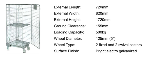RCA-01 Dimension: 720x820x1720mmLoading Capacity: 500 kg Easy access to products | Strong construction | Save space | Save shipping cost
