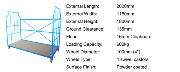 RCZ-200 Dimension: 2000x1150x1800mmLoading Capacity: 600 kg Easy access to products | Strong construction | Save space | Save shipping cost
